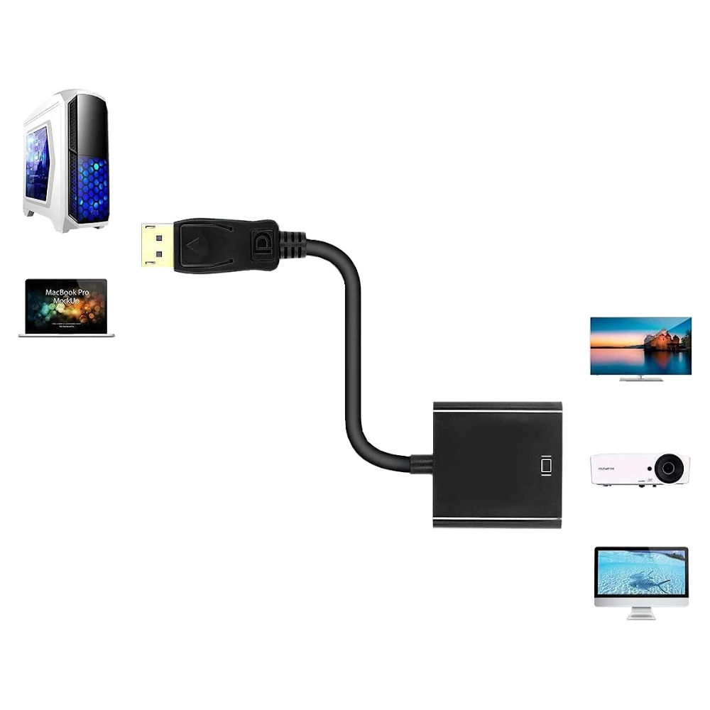 Konwerter pozwala na podłączenie komputera / laptopa / iMac / MacBook z wyjściem DisplayPort pod monitor / projektor / telewizor z wejściem HDMI.