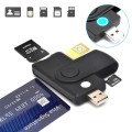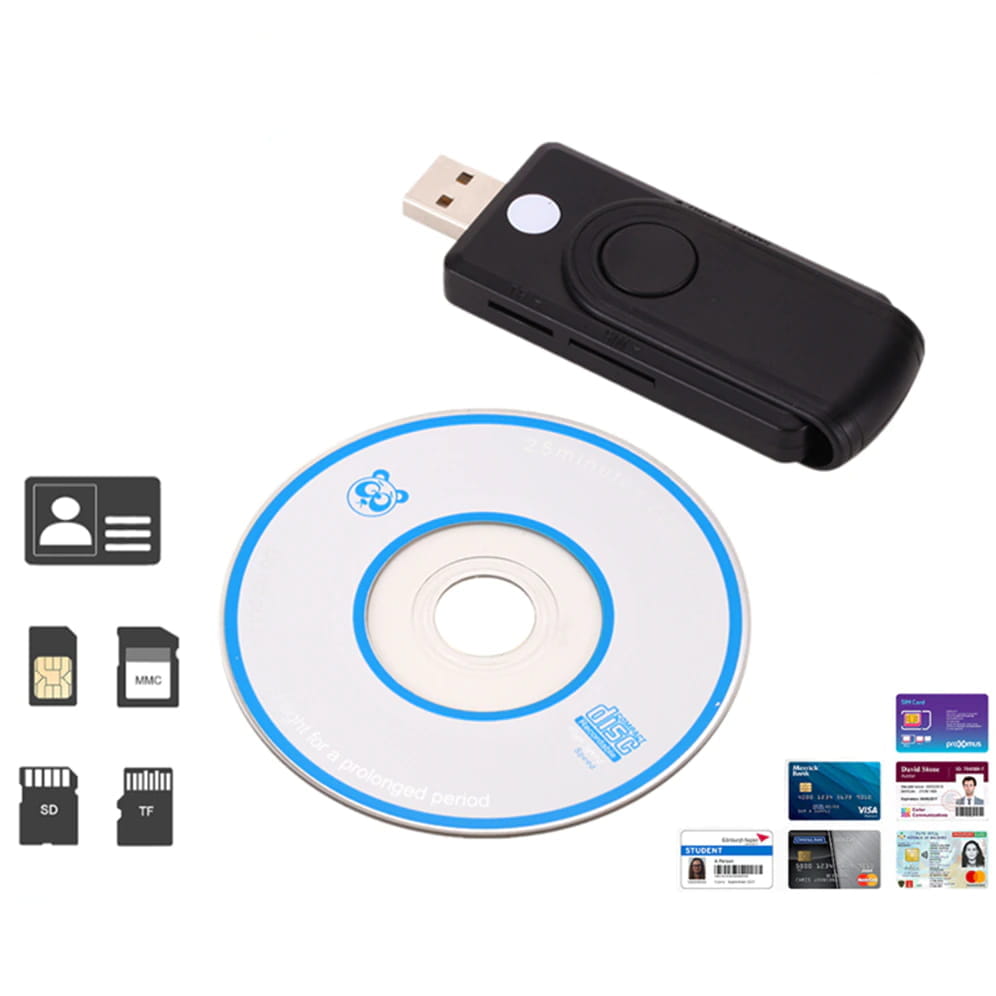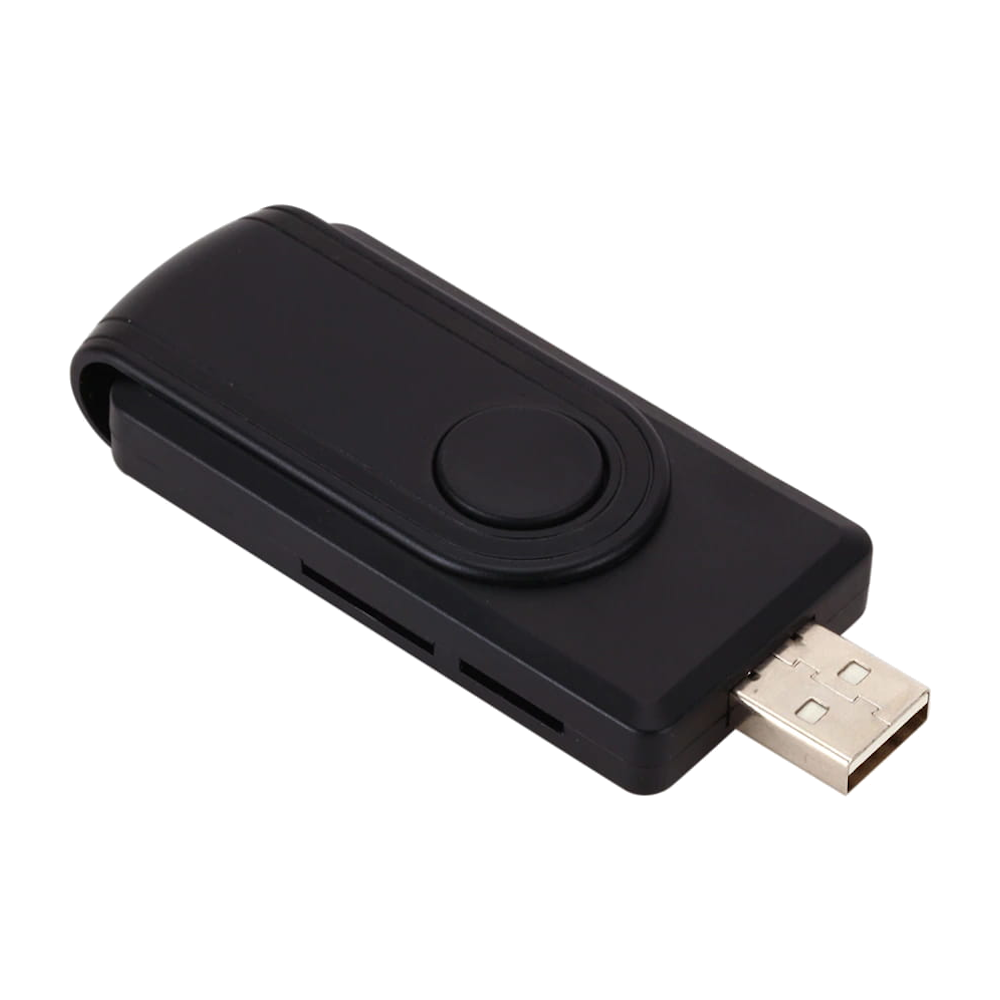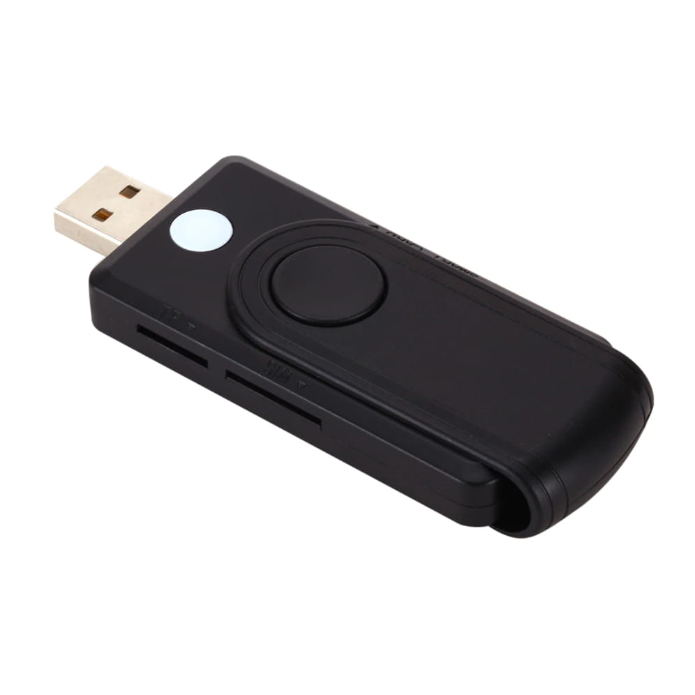 Czytnik kart elektronicznych z możliwością obsługi bankowości online i podpisu elektronicznego. Obsługuje inteligentne karty bankowe oraz dokumenty z chipem. Czytnik posiada również wejście na kartę SIM służące do klonowania karty i używania tego samego numeru telefonu na dwóch urządzeniach. Wbudowane wejście na karty pamięci typu SD i TF zapewniają szybki odczyt i zapis danych. Czytnik zasilany jest wyłącznie z gniazda USB i można używać go zarówno z komputerami stacjonarnymi i laptopami. Jest mały i mobilny, przez co zawsze możesz mieć go przy sobie.