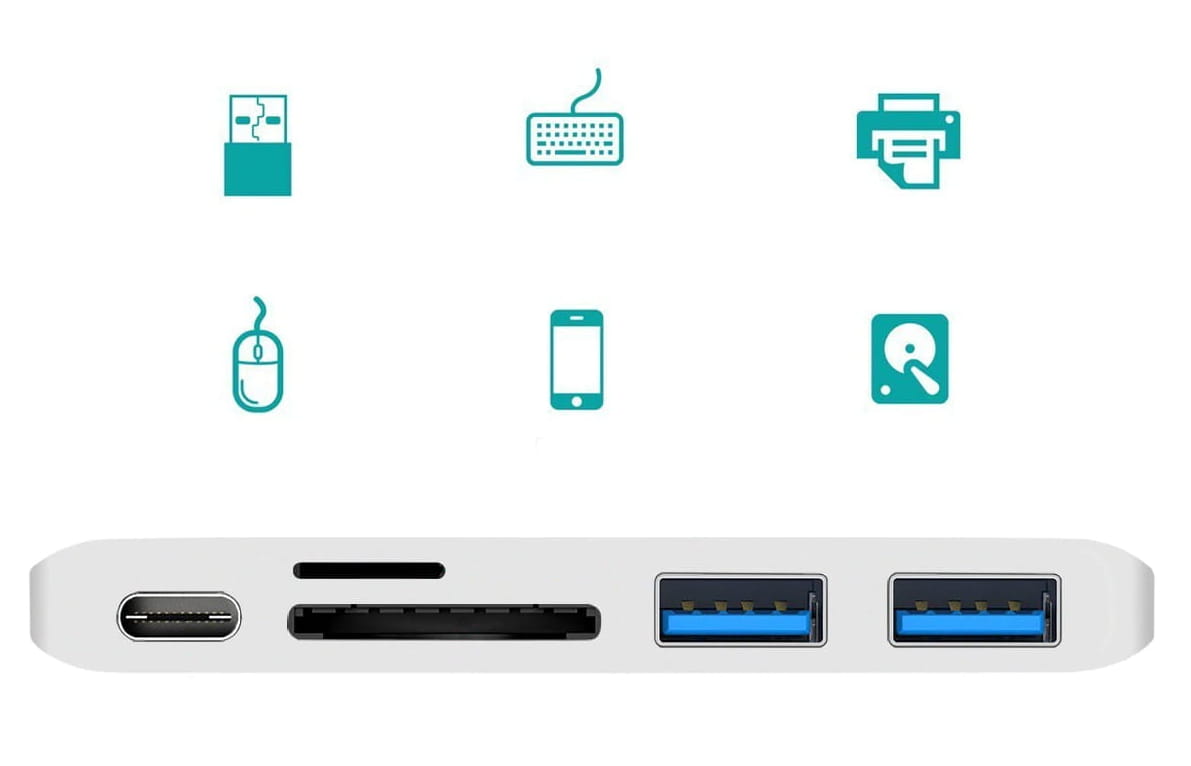 - HUB USB 3.1 typ C na 2x USB SD microSD