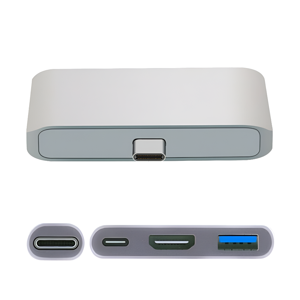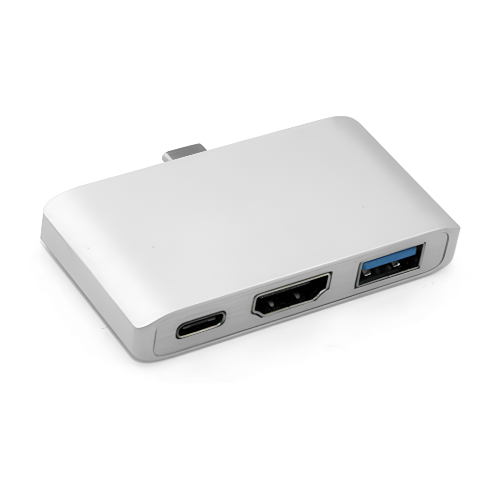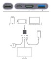 Stacja dokująca z wtyczką USB 3.1 typu C umożliwiająca podłączenie różnych urządzeń wyposażonych w złącza USB 3.0 / USB 3.1 typ C / HDMI. Przejściówka doskonale wspomaga pracę z laptopem lub telefonem wyposażonym w OTG. Po podłączeniu odpowiedniego kabla do adaptera można transmitować obraz lub przesyłać pliki oraz ładować urządzenie.
