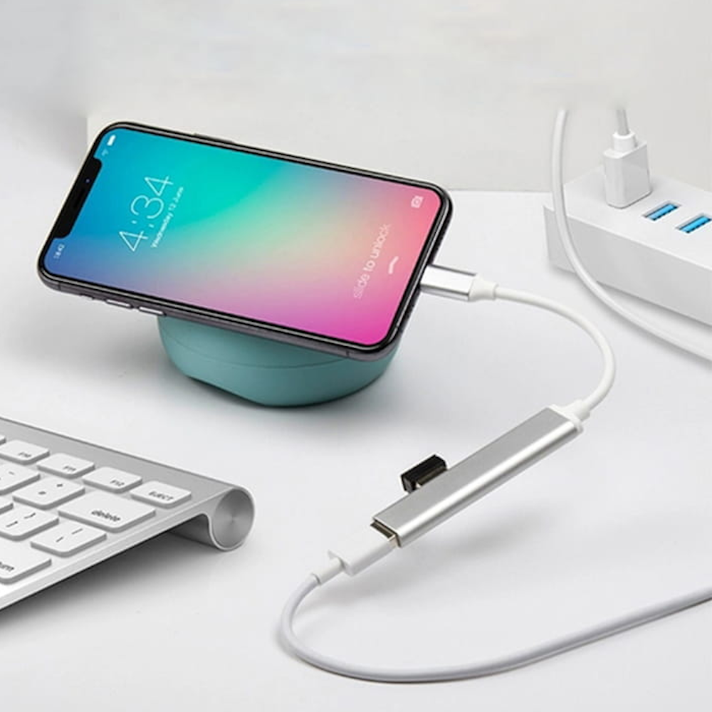 Brakuje Ci standardowych gniazd USB w laptopie wyposażonym tylko w gniazda USB typu C lub chcesz rozbudować funkcjonalność telefonu o nowe możliwości, to mamy dla Ciebie rozwiązanie. HUB posiada trzy gniazda USB 2.0 typu A oraz gniazdo jedno gniazdo USB 3.0. Do gniazd USB podłączysz różnego rodzaju sprzęty do obsługi laptopa czy telefonu. Za pomocą Adaptera podłączysz myszkę, klawiaturę, pendrive lub dysk zewnętrzny. USB 3.0 pozwala na bardzo szybkie przesyłane danych do 5120Mbps, dzięki czemu idealnie sprawdza się do podłączenia dysków zewnętrznych. Urządzenie działa na zasadzie Plug&Play i nie wymaga sterowników.