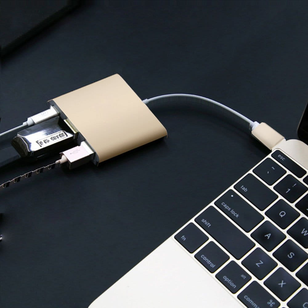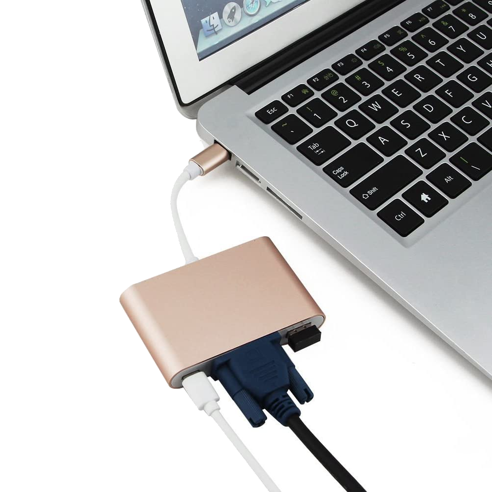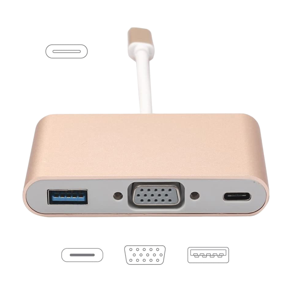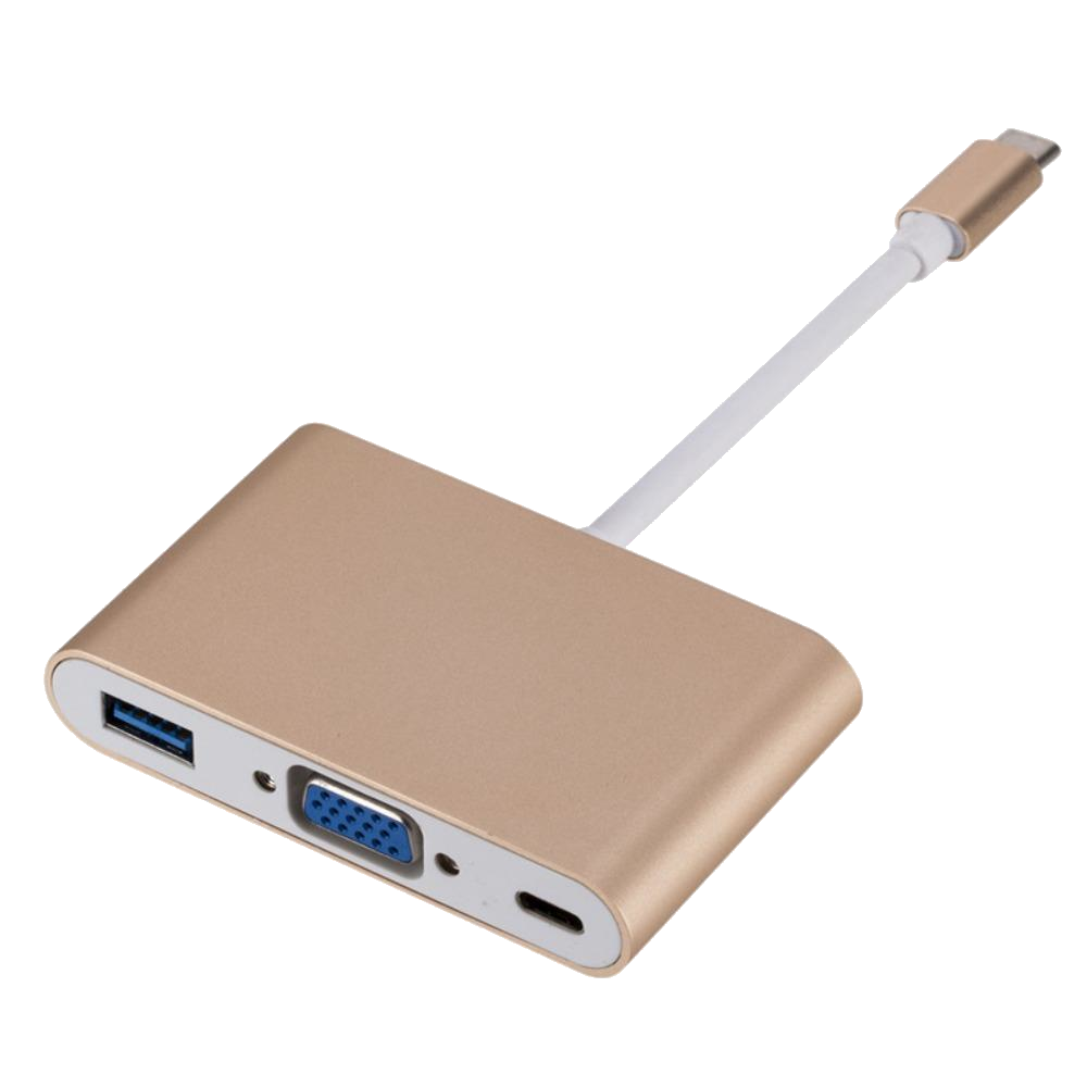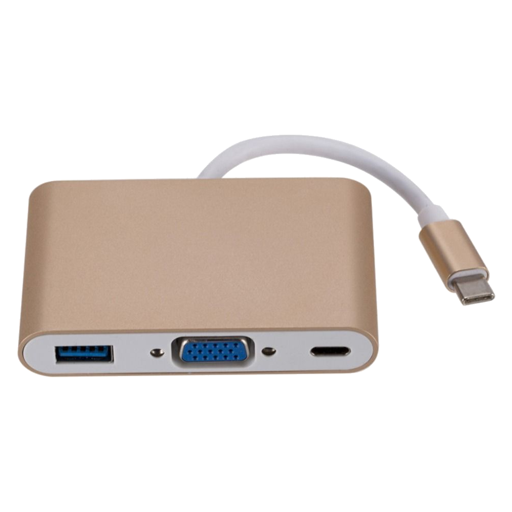 HUB USB 3.1 typ C na USB 3.0 / VGA / USB-C Złoty Gold adapter konwerter