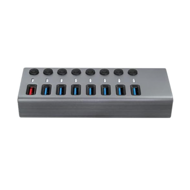 Hub USB 7x 3.0 + 1 port ładujacy to profesjonalny rozgałęźnik portów USB, który pozwoli Ci na łatwe rozszerzenie funkcjonalności twojego komputera. Za pomocą tego urządzenia, możesz jednocześnie podłączyć do 7 urządzeń USB 3.0 oraz jedno urządzenie do szybkiego ładowania. Wykonany z dobrej jakości aluminium, jest nie tylko solidny, ale także wygląda stylowo.