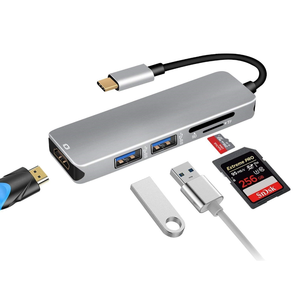 Hub USB-C 3.1 konwerter 2x USB 3.0 HDMI micro SD czytnik kart przejściówka