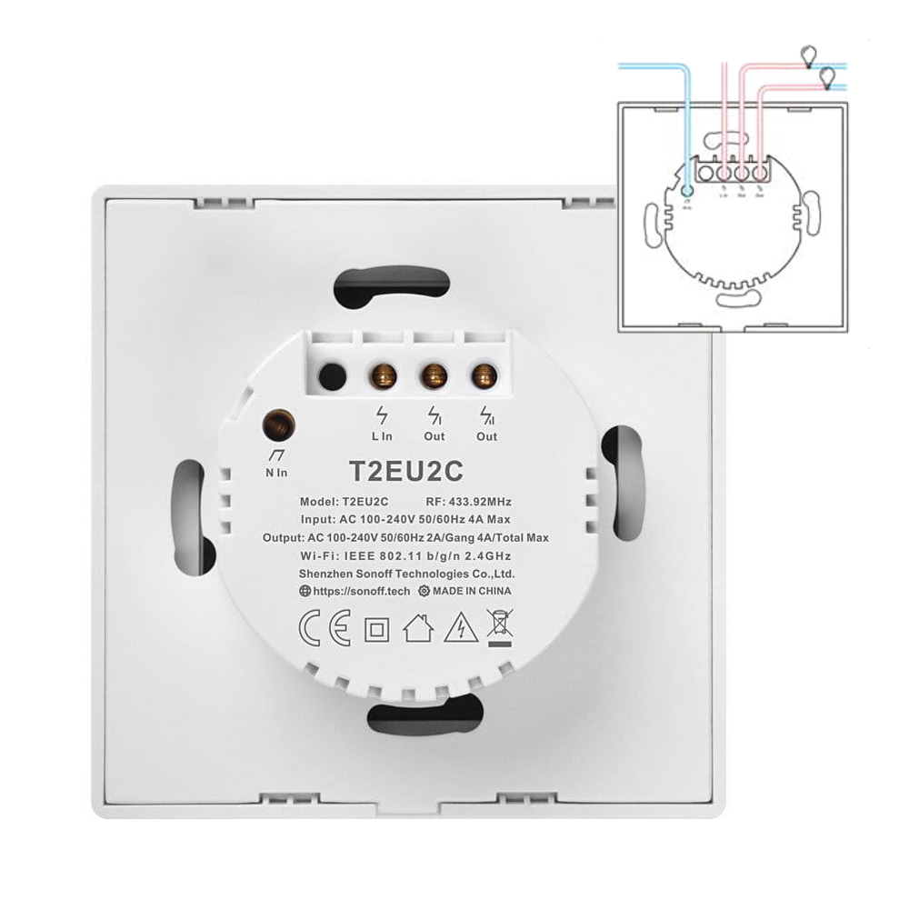 Inteligentny przełącznik SONOFF TX T2EU2C Włącznik dotykowy BIAŁY 2 kanały