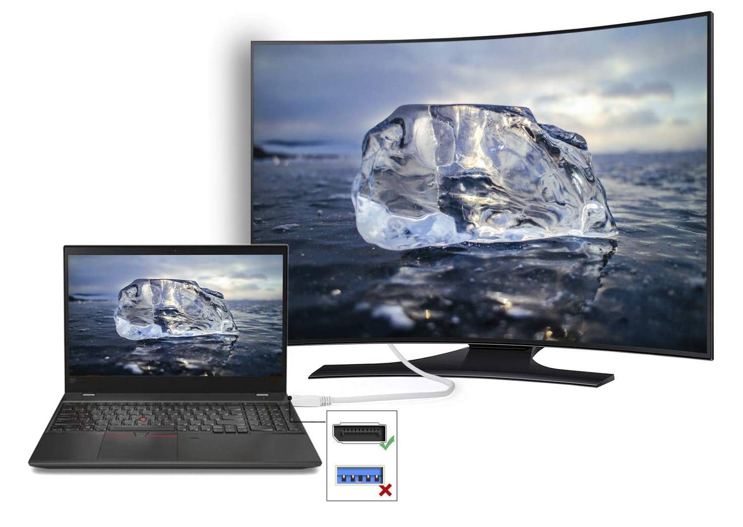Kabel złączem DisplayPort podłączamy się do komputera/laptopa, a złaczem HDMI do monitora/telewizora. NIE ODWROTNIE!.