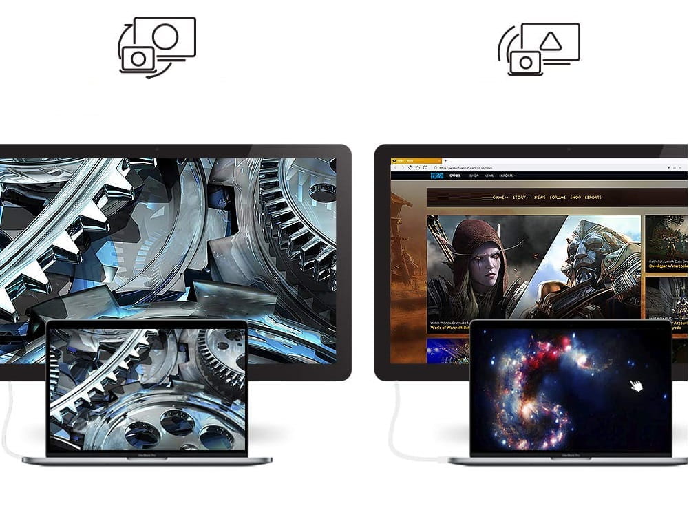 - Przesyła obraz i dźwięk wysokiej rozdzielczości z komputera na telewizor HD