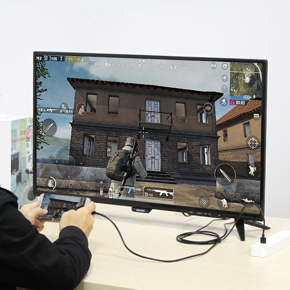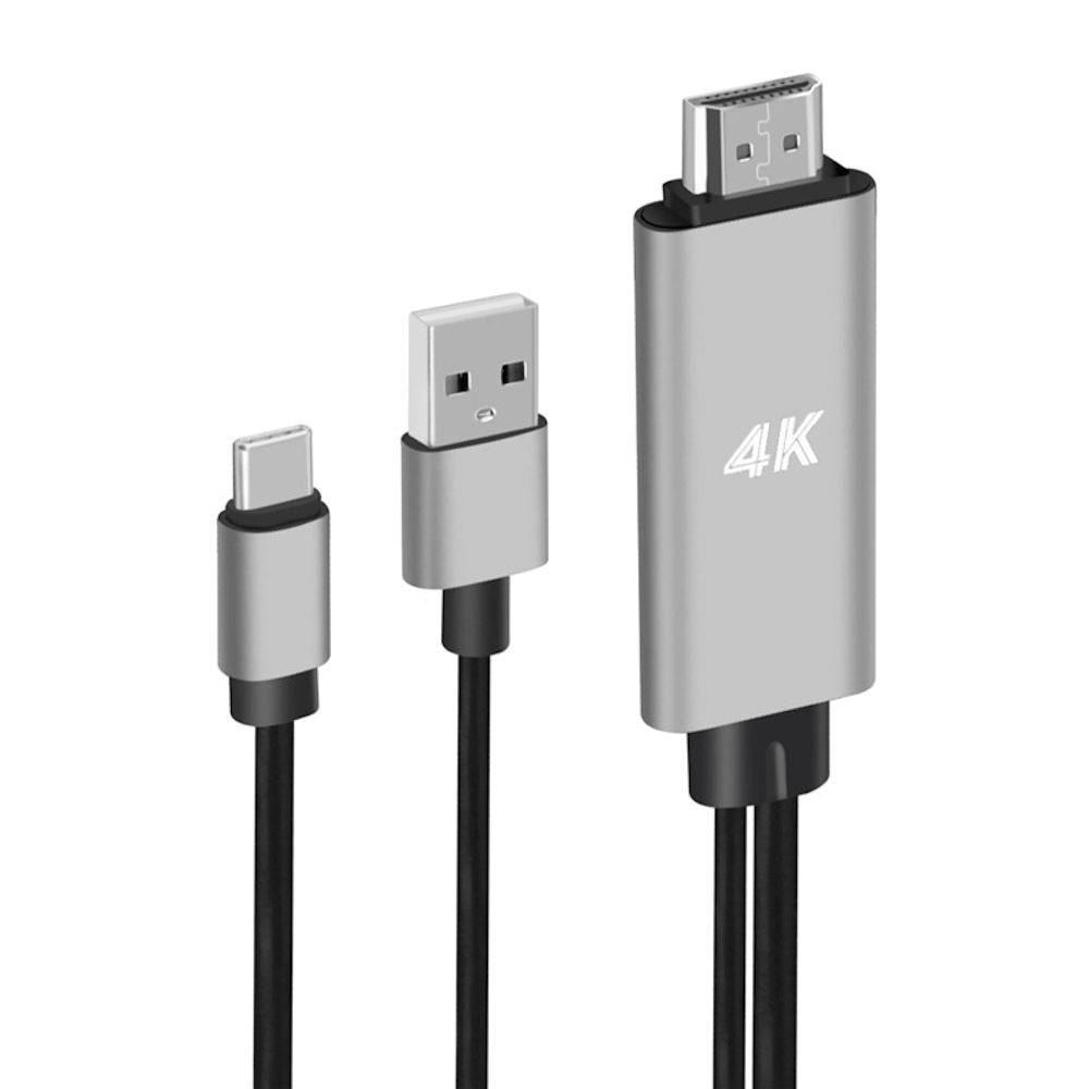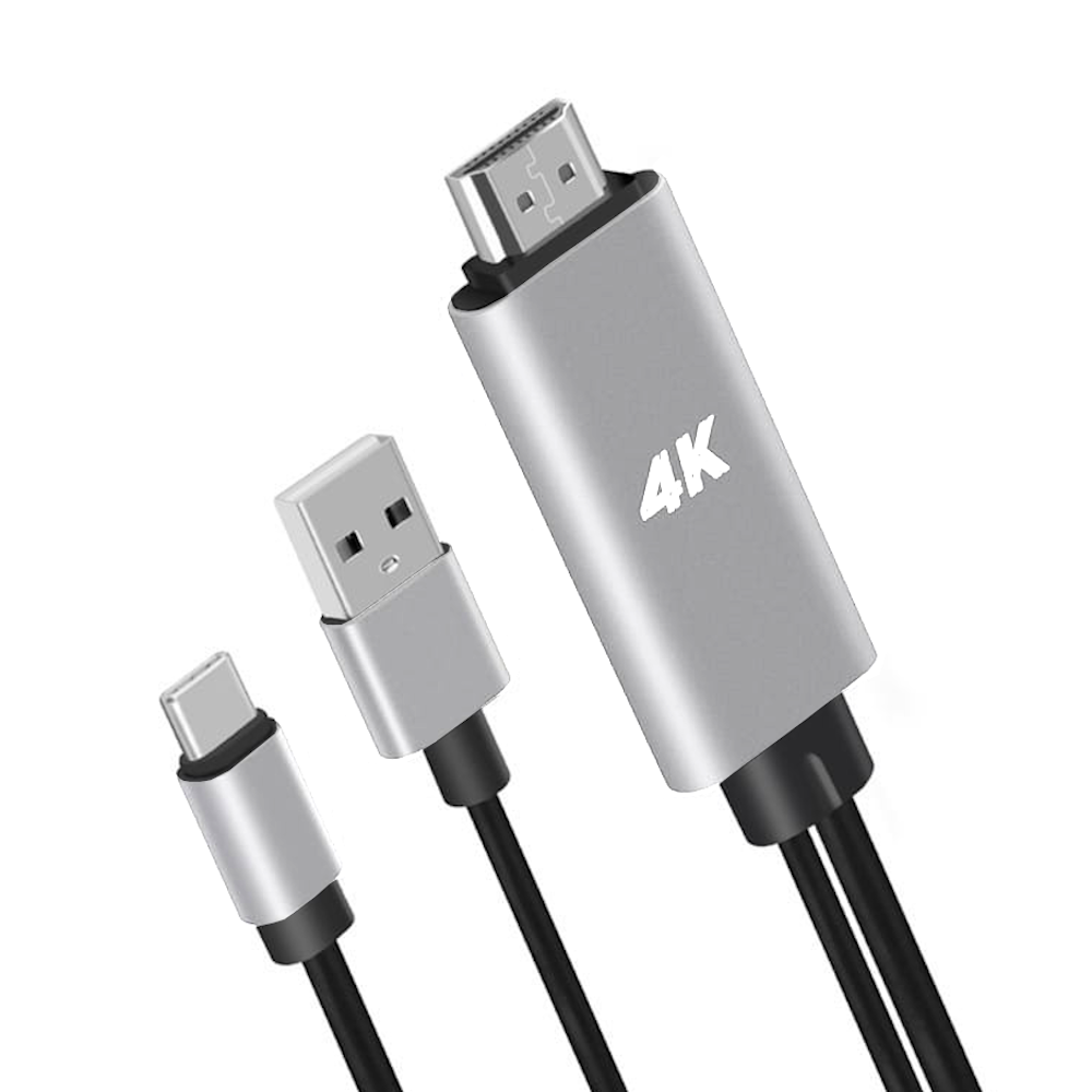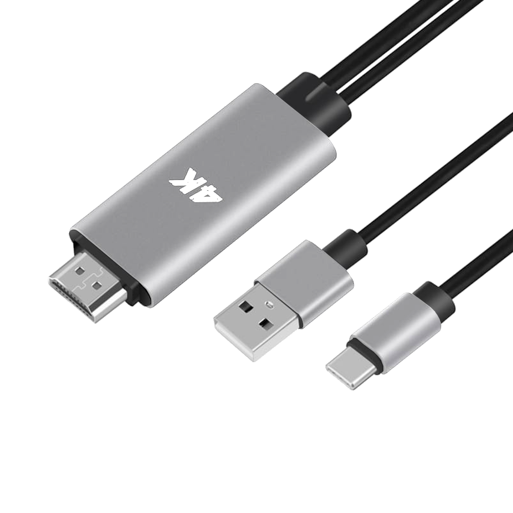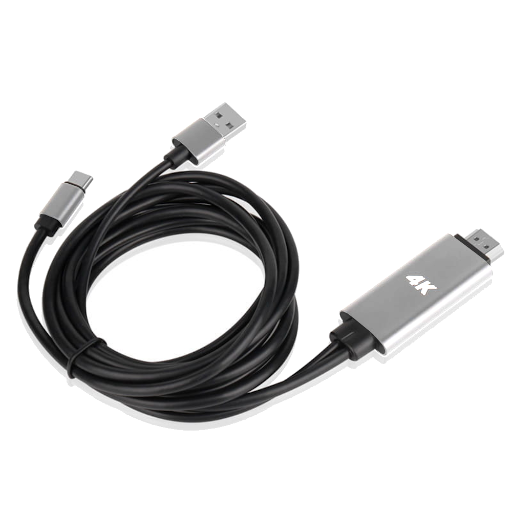 Kabel USB typ-C służący do przesyłu wideo i dźwięku umożliwiający podłączenie urządzeń mobilnych jak smartfon / tablet / laptop / komputer z zewnętrznym wyświetlaczem z gniazdem HDMI jak telewizor / monitor / projektor w jakości 4k x 2k (3840x2160 HD) oraz przesyła dźwięk 8-kanałowy. Dodatkowy kabel USB-A służy do ładowania podczas projekcji na dużym ekranie.