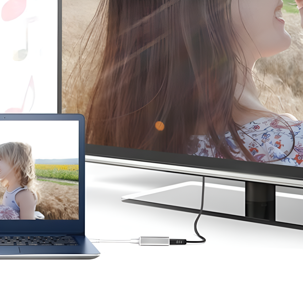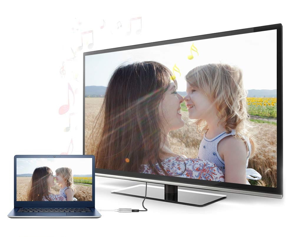 - Konwertuje cyfrowy sygnał USB na sygnał HDMI wraz z audio,