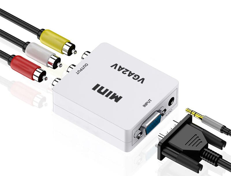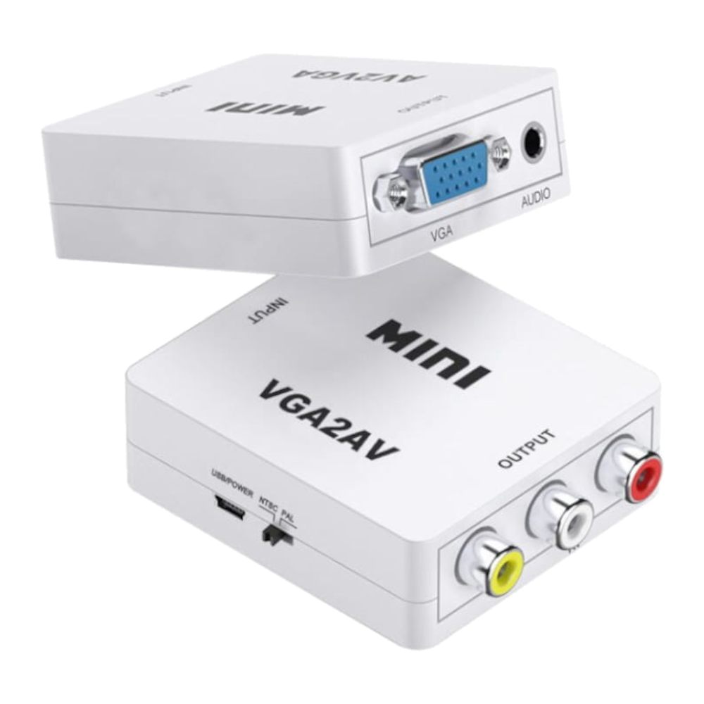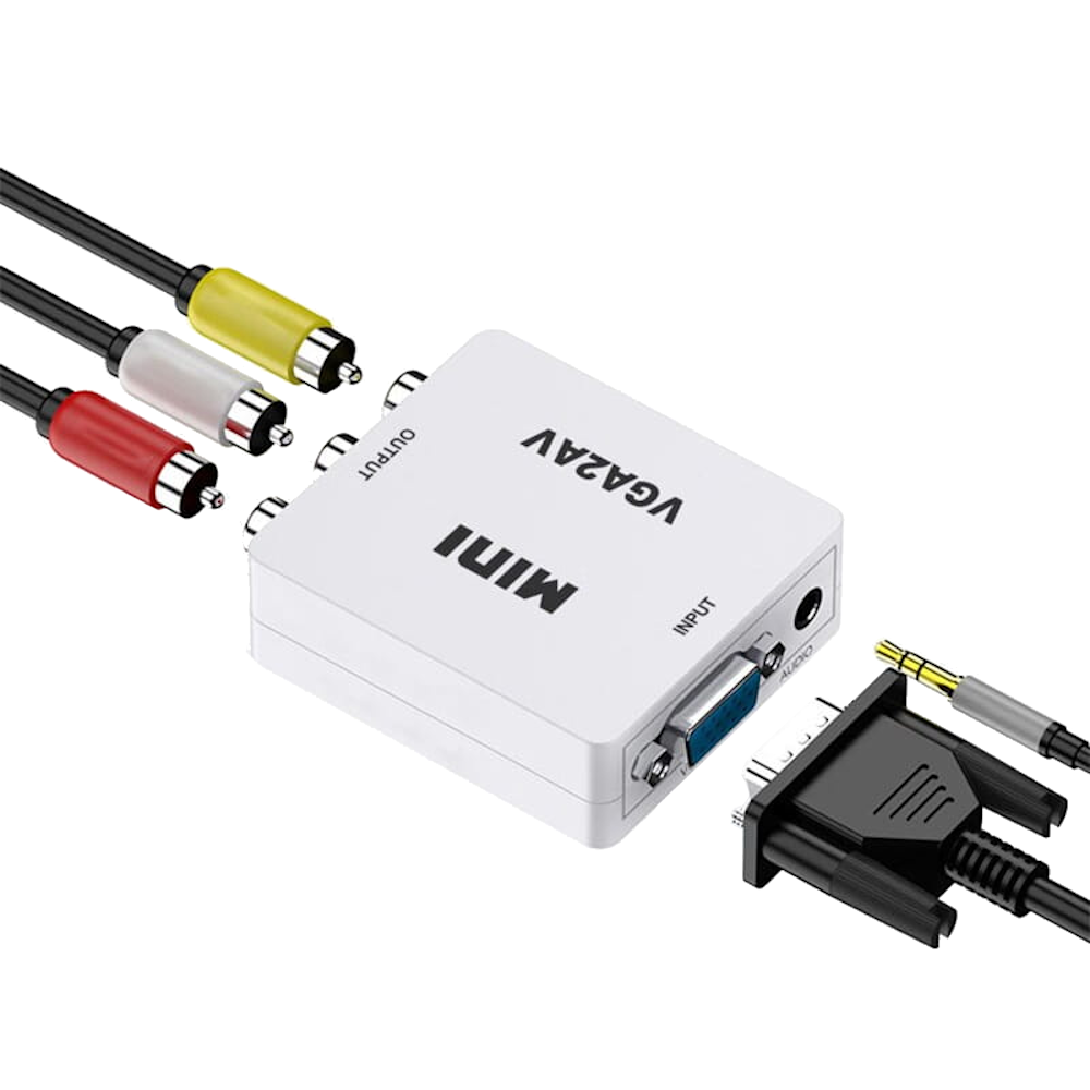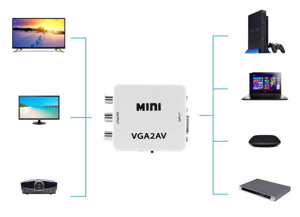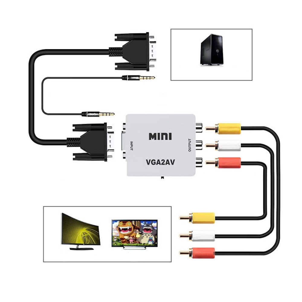 Konwerter umożliwia przejście ze złącza VGA + jack 3,5mm na AV 3x chinch. Możesz bez problemu podłączyć np: komputer / laptop / konsolę / odtwarzacz, który jest wyposażony w wyjście obrazu VGA i podłączyć go do wyświetlacza / projektora / telewizora, który posiada złącze AV. Do konwertera ze strony wejścia podłączasz przewody VGA i jack 3,5mm, a przy wyjściu przewody AV 3x chinch dla obrazu i dźwięku.