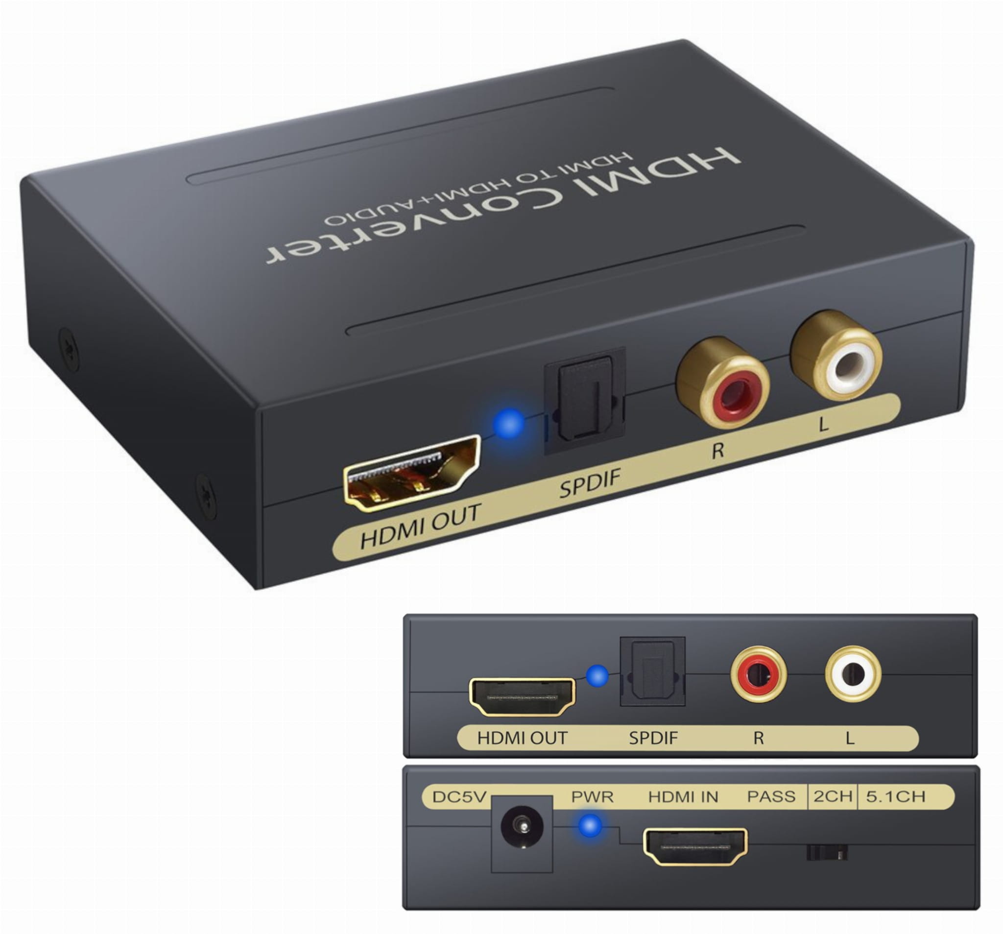 Separator sygnału audio z cyfrowego wejścia HDMI na wyjście HDMI do przesyłania obrazu oraz na gniazdo audio optyczne Toslink lub analogowe 2x Chinch R/L RCA, za pomocą których można wysłać dźwięk do wzmacniacza lub amplitunera, w celu otrzymania większych wrażeń odsłuchowych niż z głośników telewizora. Dzięki takiemu połączeniu możesz użyć ulubionego sprzętu do odtwarzania audio podczas oglądania filmów, koncertów, teledysków oraz programów telewizyjnych. Sprawdzi się również z konsolami do gier, które posiadają tylko wyjście HDMI do przesyłania obrazu i dźwięku do telewizora.