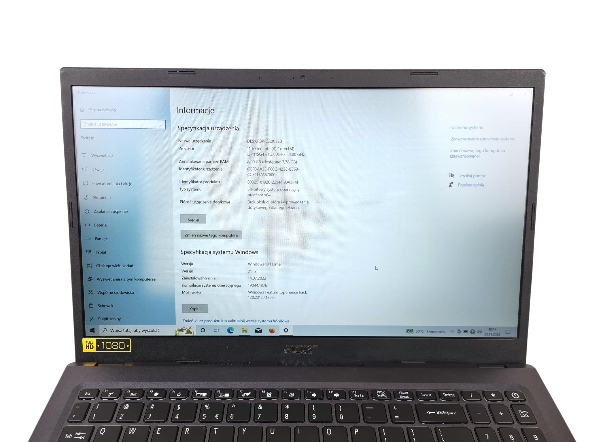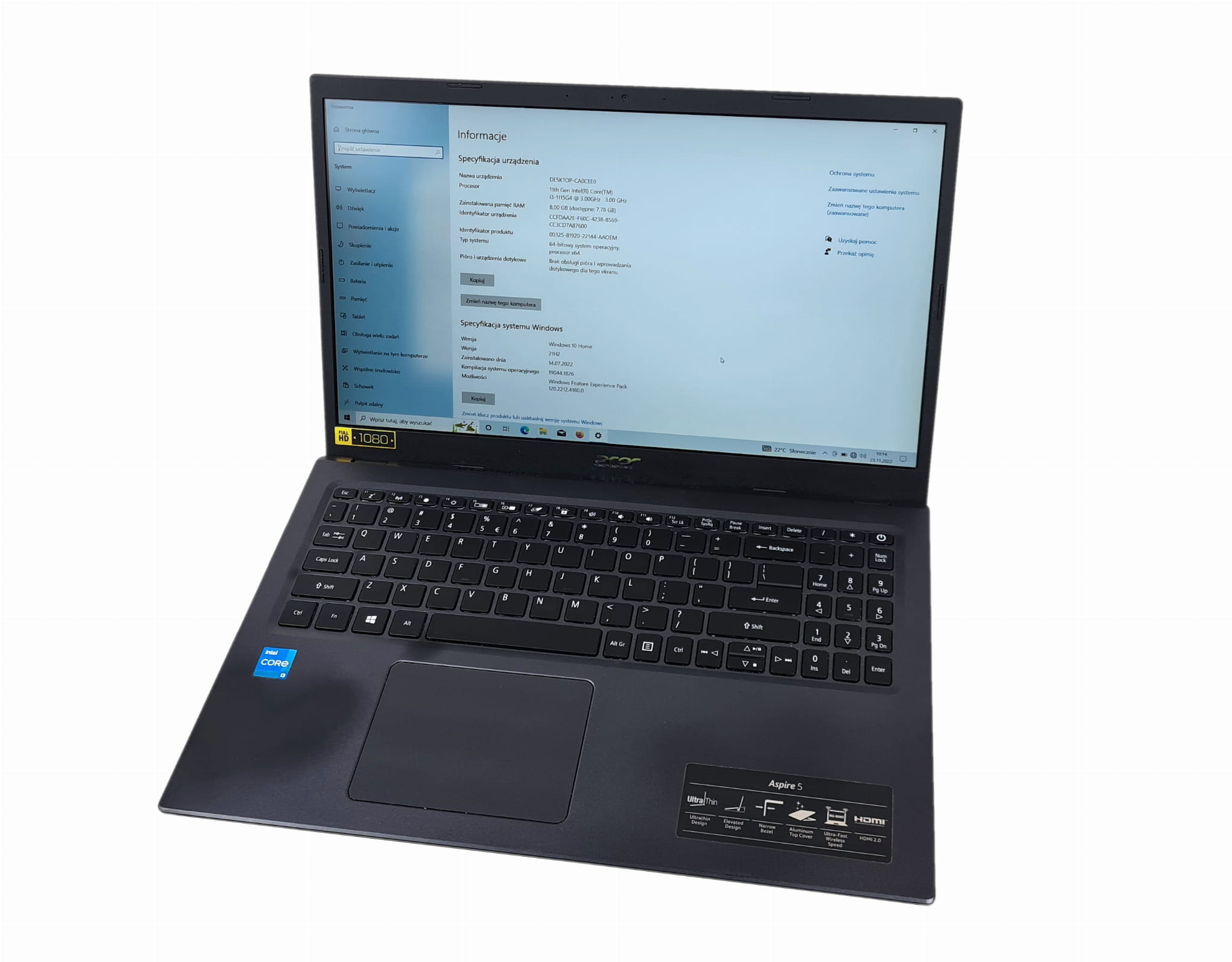- Informacje o procesorze: Intel Core i3-1115G4