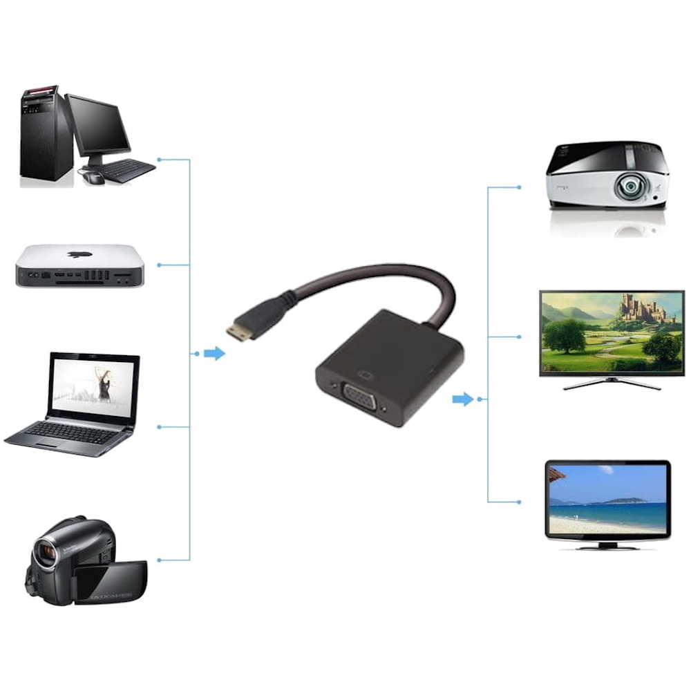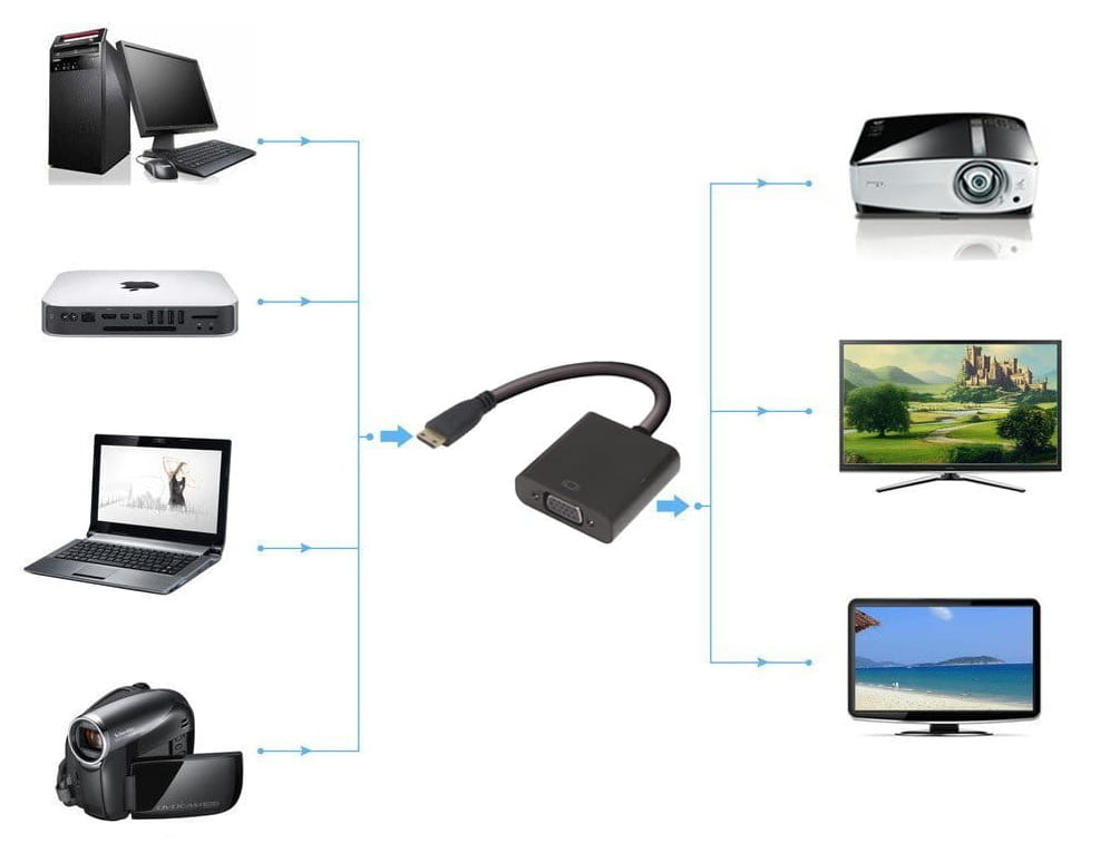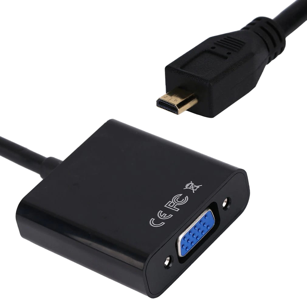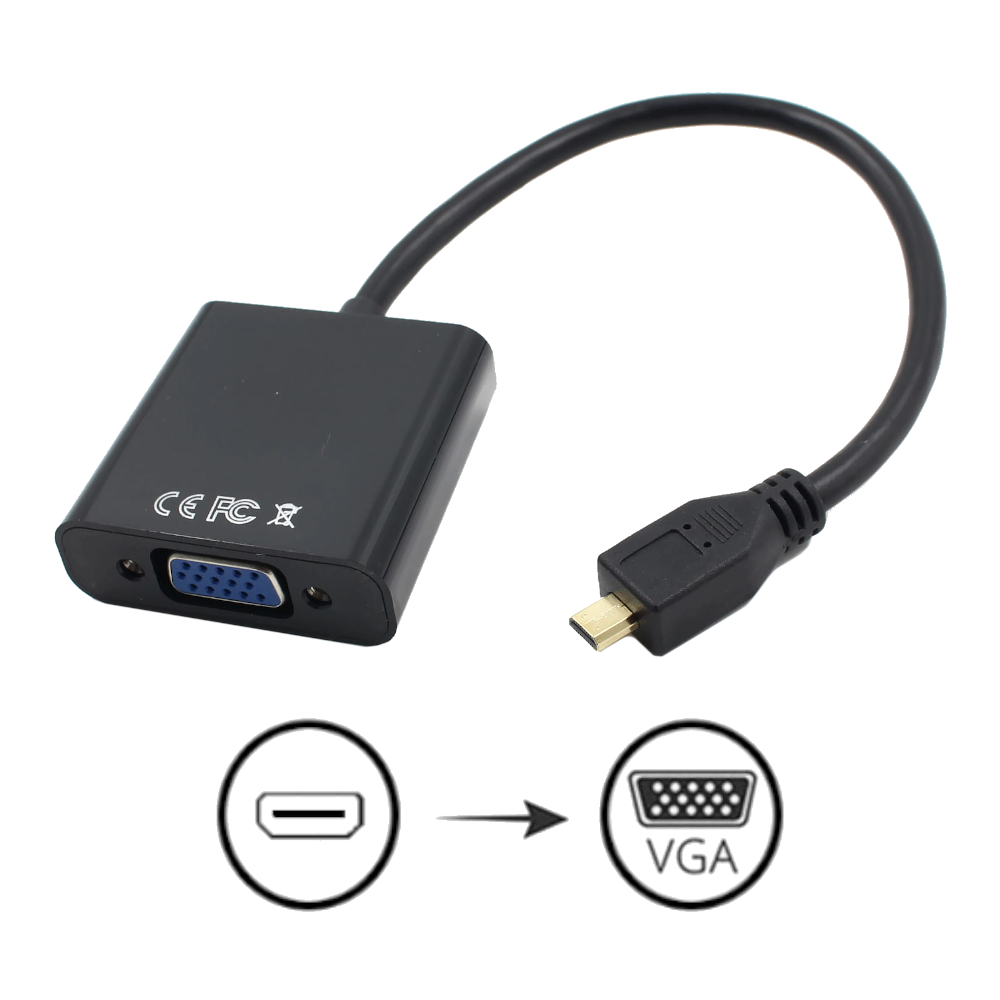 Przejściówka ze złącza micro HDMI na VGA + dźwięk przez jack 3,5mm. Umożliwia podłączenie takich urządzeń jak smartfon / tablet / laptop z micro HDMI do monitora / projektora / telewizora z wejściem VGA oraz przesyłanie sygnału audio za pomocą złącza jack 3,5mm. Sygnał audio może zostać wysłany do ekranu z głośnikami lub do zewnętrznego systemu nagłośnienia, jak sprzęt HiFi / kino domowe. Zapewnia pełne wsparcie dla rozdzielczości Full HD 1080p. Adapter działa na zasadzie Plug&Play - automatycznie, wystarczy wpiąć go w odpowiednie gniazda.