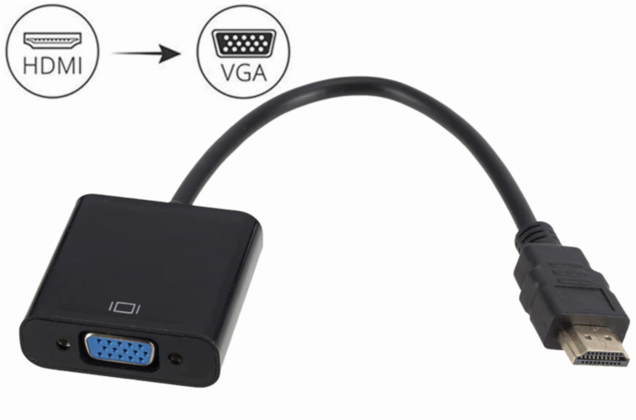 Przejściówka ze złącza mini HDMI na VGA. Umożliwia podłączenie takich urządzeń jak smartfon / tablet / laptop z mini HDMI do monitora / projektora / telewizora z wejściem VGA. Zapewnia pełne wsparcie dla rozdzielczości Full HD 1080p. Adapter działa na zasadzie Plug&Play - automatycznie, wystarczy wpiąć go w odpowiednie gniazda.