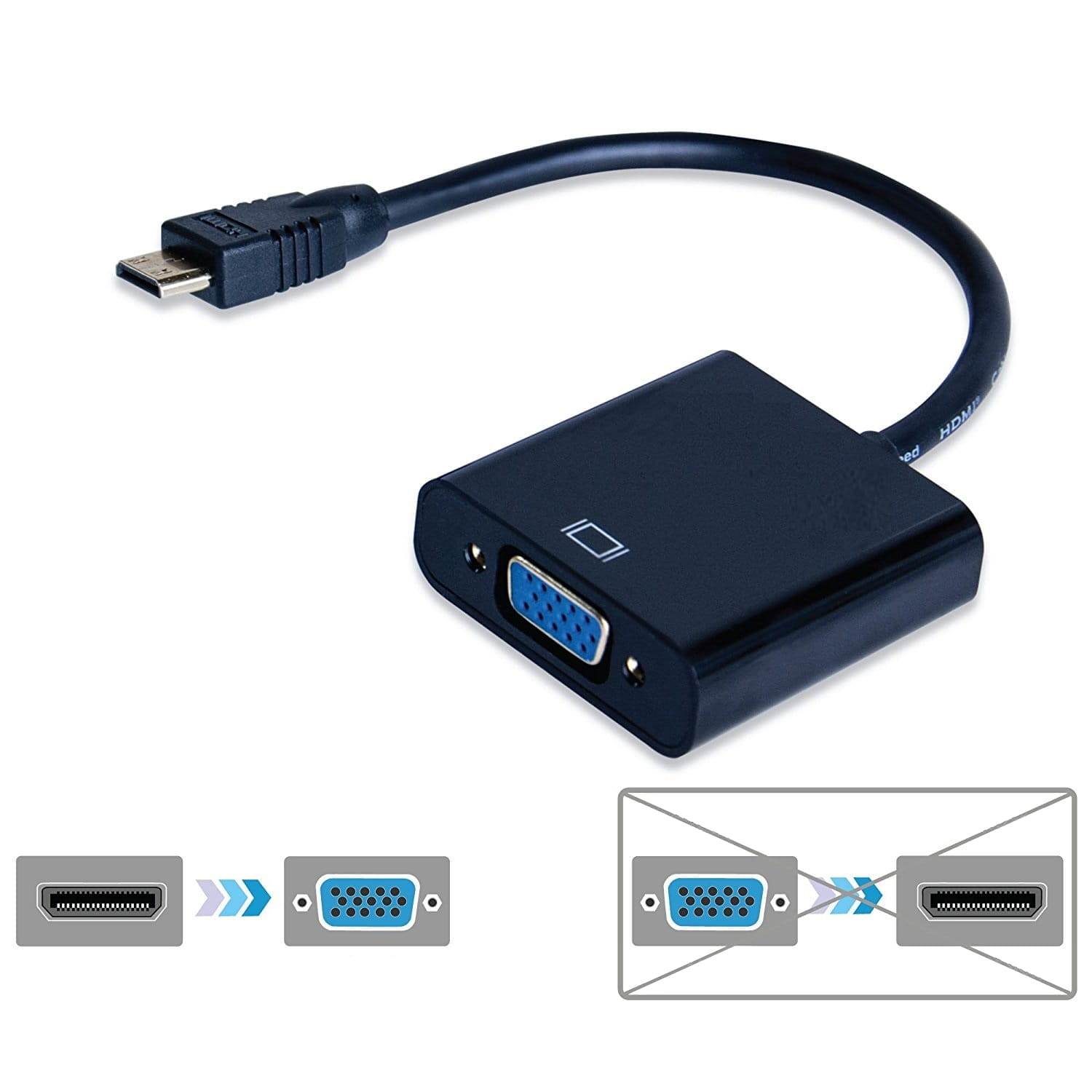 - Kierunek: z mini HDMI na VGA