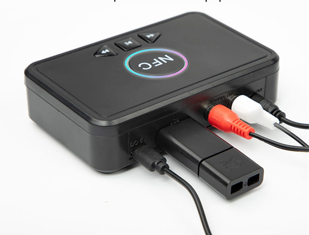 Receiver D10 pozwala na bezprzewodowe odbieranie sygnałów audio i przesyłanie za pomocą przewodów do głośników lub słuchawek. Urządzenie wyposażono w dwa nowoczesne rodzaje bezprzewodowych odbiorników w technologii NFC oraz Bluetooth 5.0. Odbiornik wyposażono w wyjście AUX oraz 2x Cinch dzięki którym podłączymy głośniki lub słuchawki. Dodatkowo adapter posiada wejście USB, dzięki któremu odtworzymy muzykę z pendrive. Urządzenie ładowane jest za pomocą kabla micro USB dołączonego do zestawu. Pojedyncze naciśnięcie "strzałki" powoduje przewijanie utworu, przytrzymanie przycisku "strzałki" spowoduje zmianę głośności.
