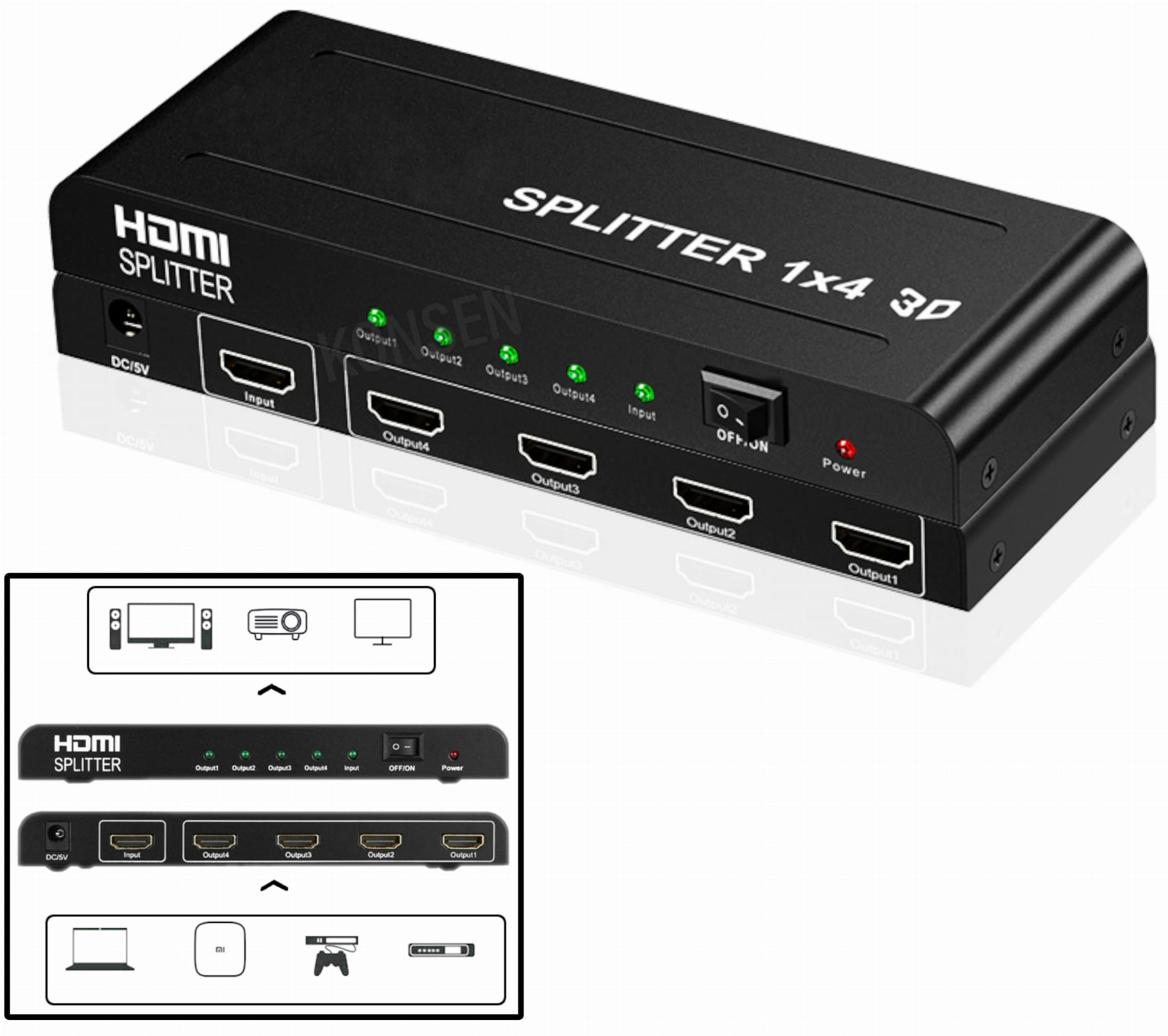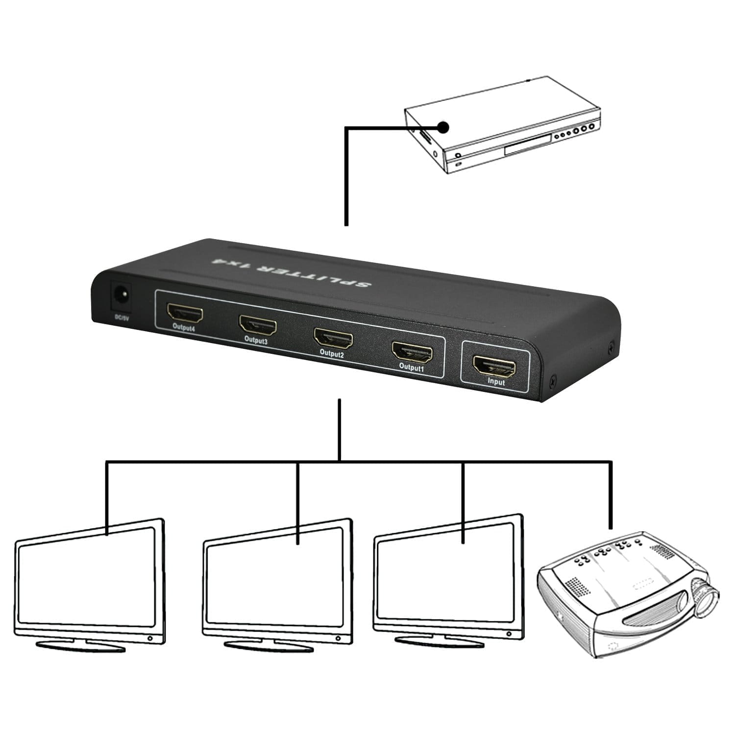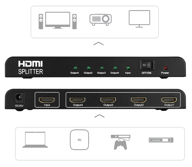 - Splitter HDMI 1x4,