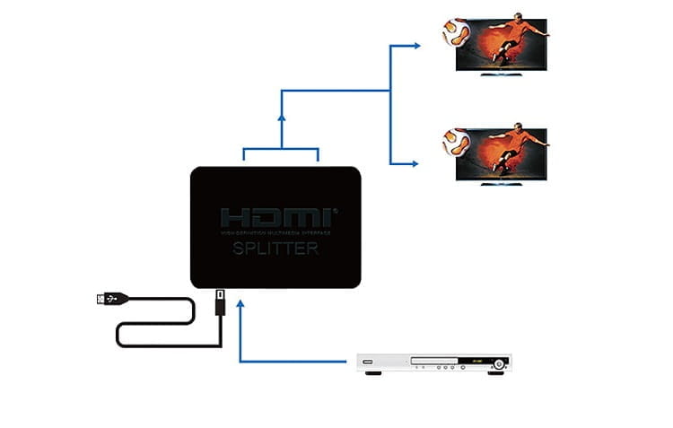 Splitter HDMI 1x2 umożliwia klonowanie obrazu z dźwiękiem na 2 różne wyświetlacze