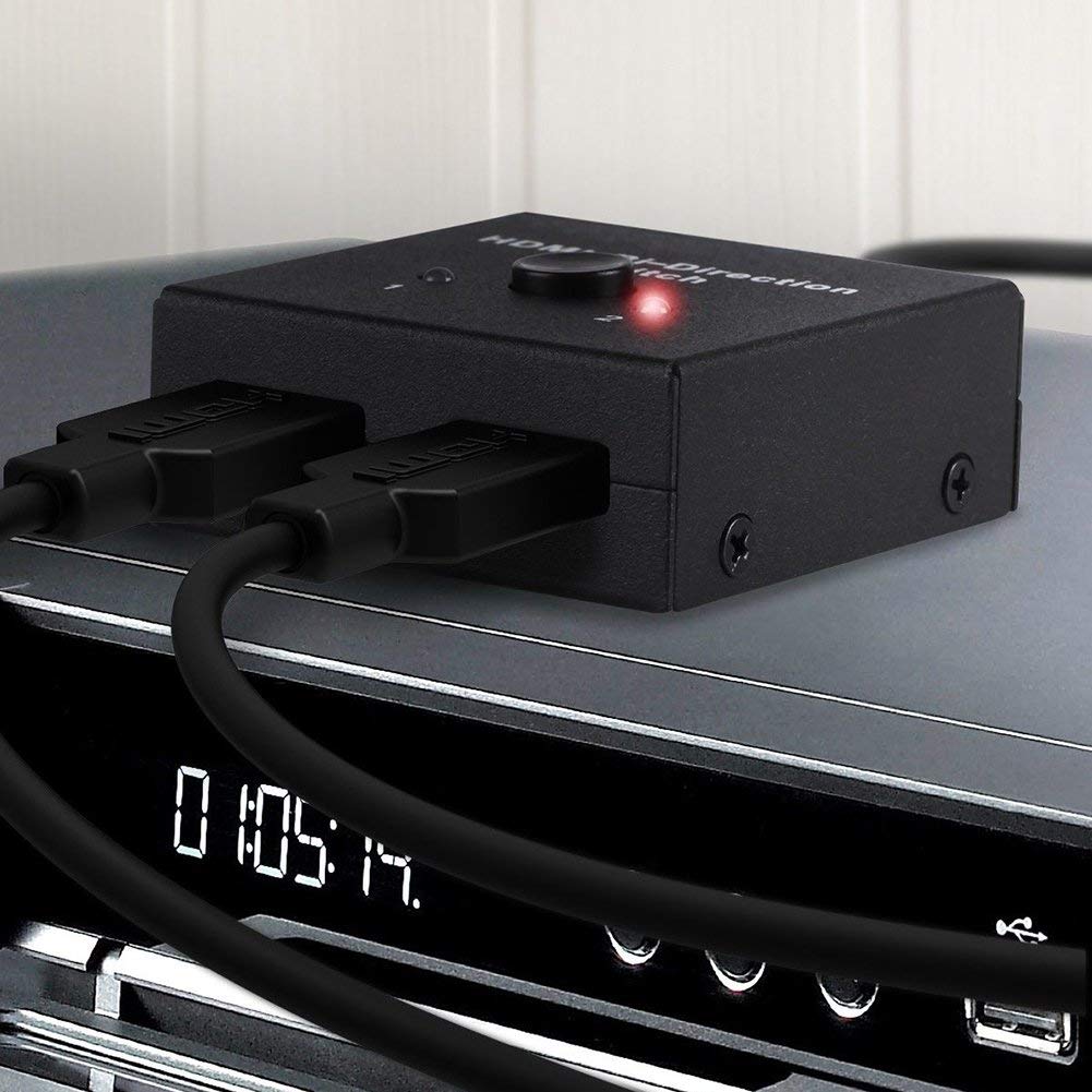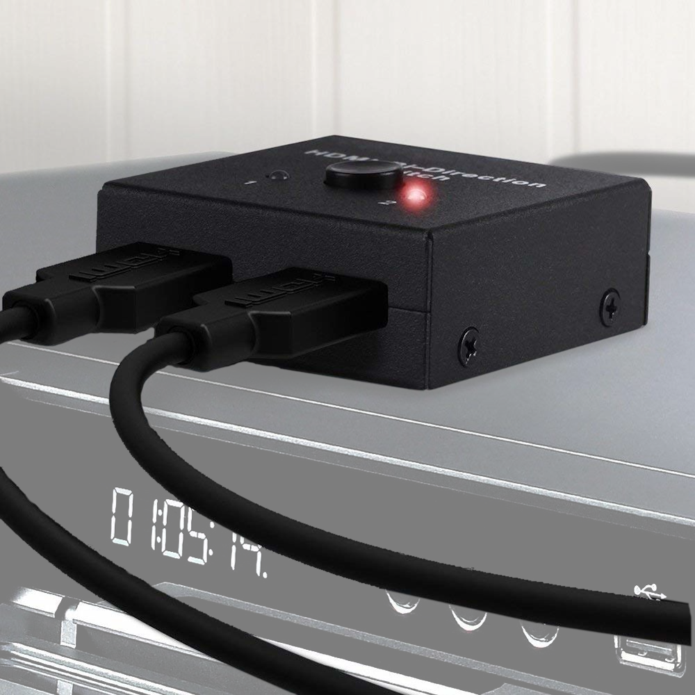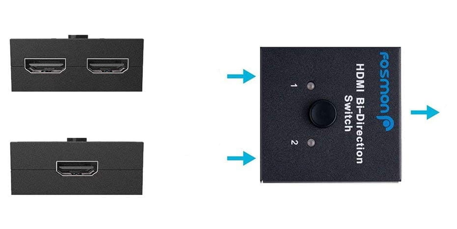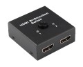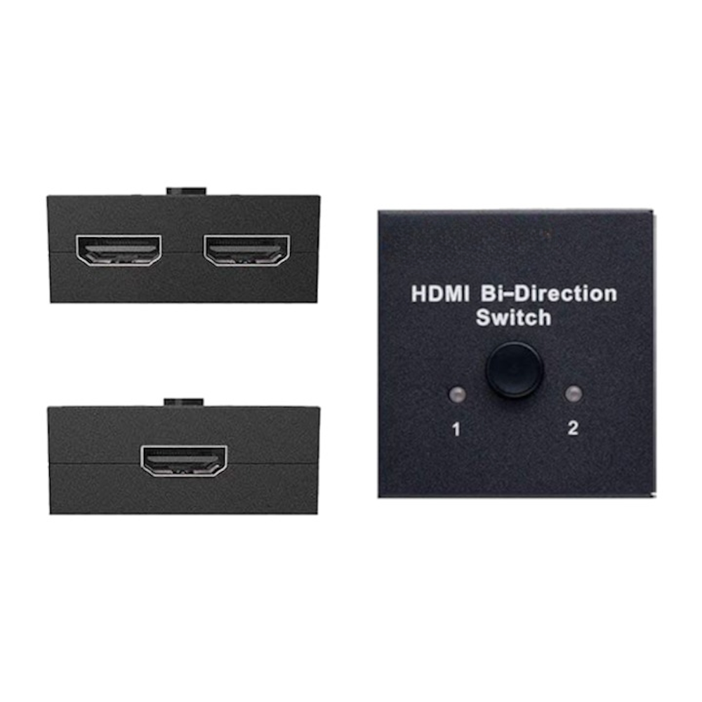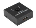 Dwukierunkowy switch HDMI pozwala na współpracę dwóch nadajników z jednym wyświetlaczem (2x1) lub jednego urządzenia nadającego z dwoma wyświetlaczami (1x2). Jednym z trybów jest podłączenie dwóch nadajników takich jak odtwarzacz Blu-Ray, konsola, komputer lub smartfon z OTG do jednego wyświetlacza, czyli np. do telewizora HD. Źródło sygnału wybiera się za pomocą przełącznika umieszczonego na switch-u, który za pomocą diody informuje z którego gniazda HDMI nadawany jest sygnał cyfrowy. Drugim trybem jest podłączenie komputera, odtwarzacza DVD, laptopa lub innego sprzętu do dwóch wyświetlaczy, takich jak: telewizor, monitor lub projektor - ze switch-em można używać wszystkich dostępnych urządzeń wyposażonych w gniazda HDMI. Podczas projekcji działa tylko jedna linia sygnału HDMI i trzeba wybrać za pomocą przełącznika na którym wyświetlaczu ma pojawić się obraz. Adapter nie wymaga sterowników i działa na zasadzie Plug&Play.