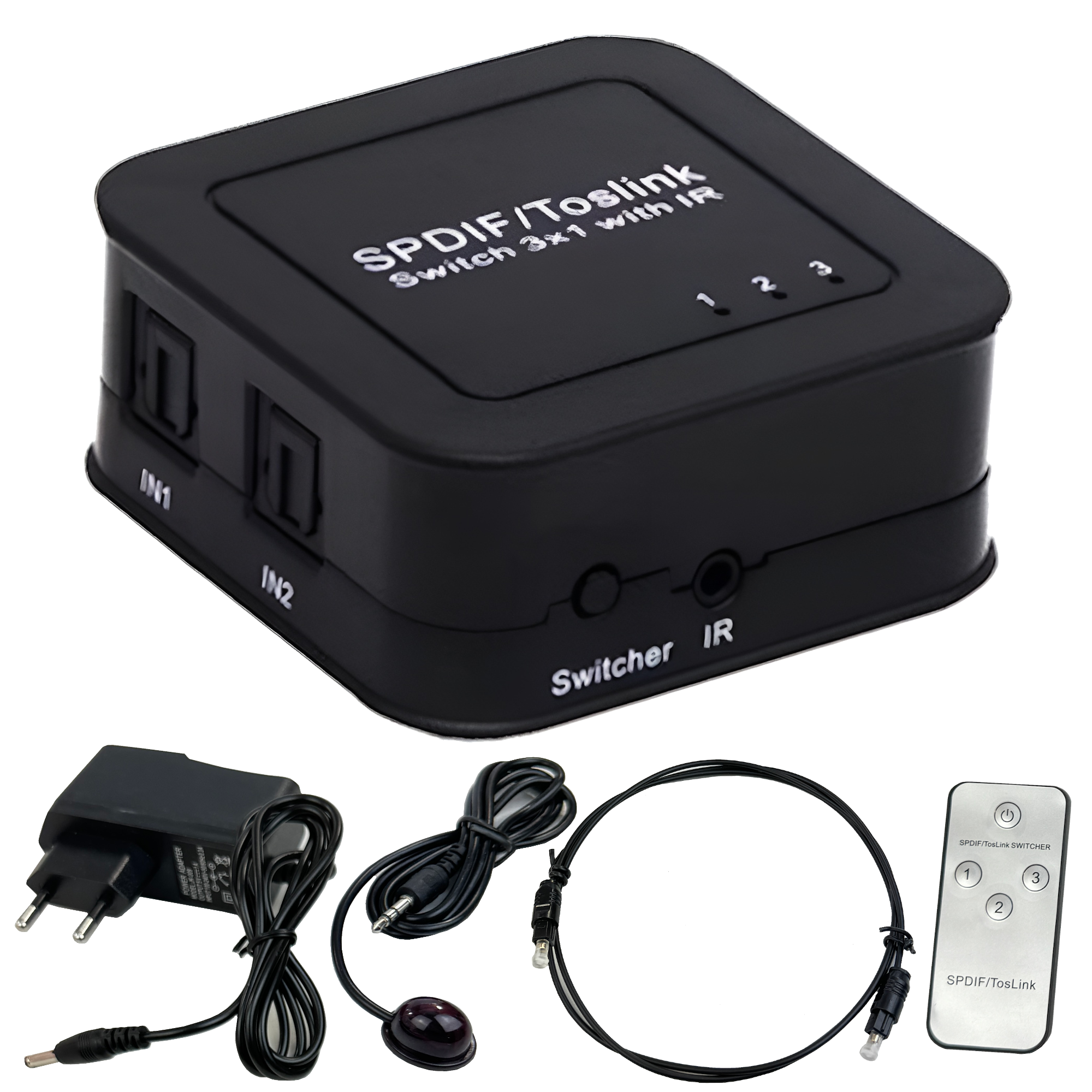 TOSLINK switch 3x1 SPDIF kabel optyczny przełącznik pilot IR rozdzielacz