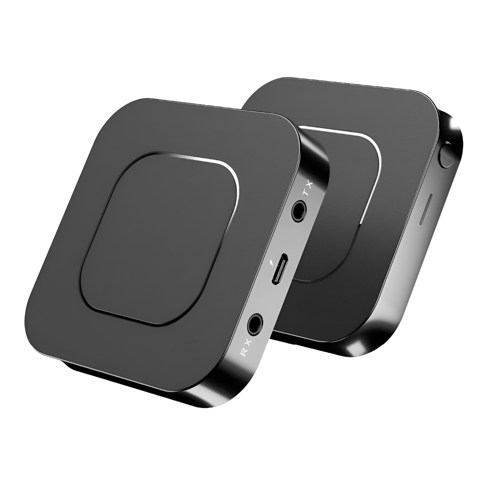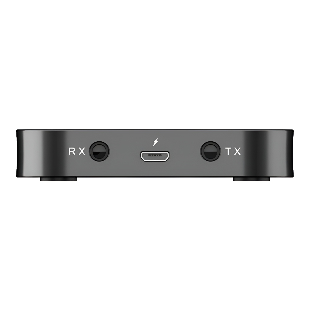 Ten niewielkich rozmiarów transmiter wyposażony jest Bluetooth 5.0 oraz złącze 2 złącza AUX (RX\TX). Urządzenie pozwala na transmisje dźwięku pomiędzy urządzeniami poprzez sygnał Bluetooth 5.0 oraz kabel JACK 3,5mm. Transmiter posiada dwa tryby pracy RX\TX. Urządzenie zostało wyposażone w budowaną baterię, ładowaną za pomocą kabla USB dołączonego do zestawu. Kabel JACK 3,5mm należy podłączyć pod odpowiednie wejście RX lub TX w zależności w jakim trybie pracy ma pracować urządzenie.
