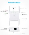Wzmacniacz umożliwia połączenie z 25 urządzeniami. Urządzenie pracuje w dwóch zakresach 2,4 GHz oraz 5GHz. Działanie urządzenia w zakresie 2,4 GHz pozwala uzyskać maksymalną prędkość łącza do 300 Mbps, natomiast podczas działania w zakresie 5GHz maksymalna prędkość łącza wynosi 866Mbps. Co sprawia, że idealnie nadaje się do streamingów gier. Przycisk WPS (Wireless Protected Setup) pozwala na szybką i prostą konfigurację szyfrowanego połączenia bezprzewodowego z innymi urządzeniami. Router wpiera szereg systemów szyfrowania WPA.