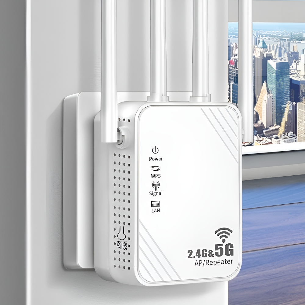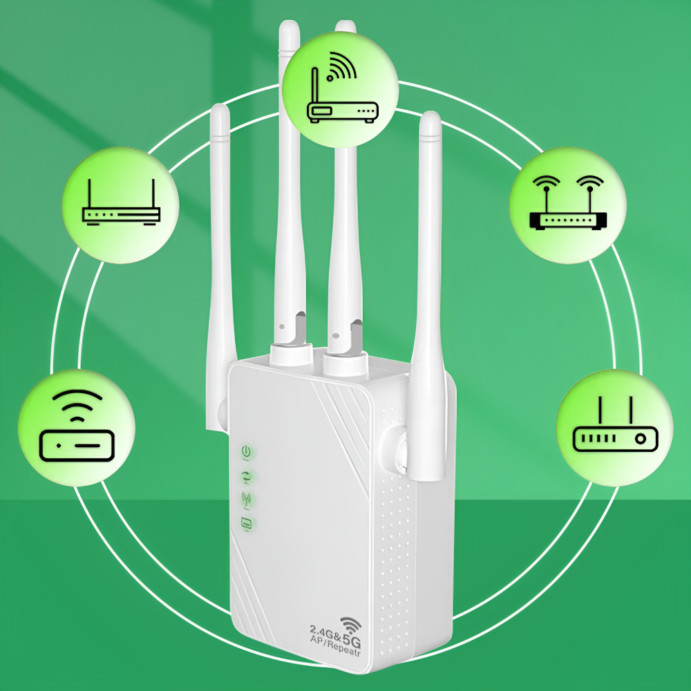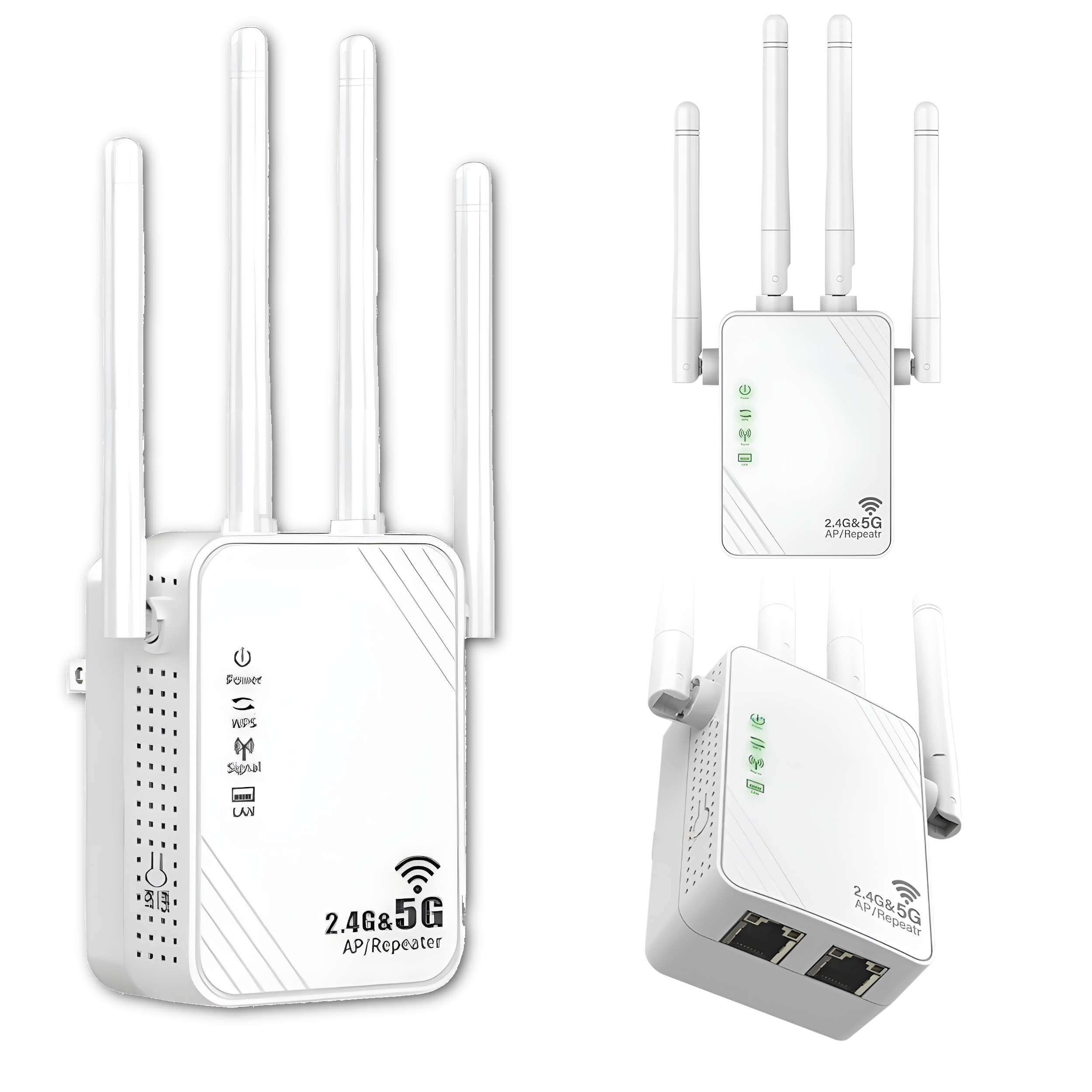 Wzmacniacz sygnału WIFI Repeater LAN RJ-45 1200Mbps Router AP 4 anteny 5GHz