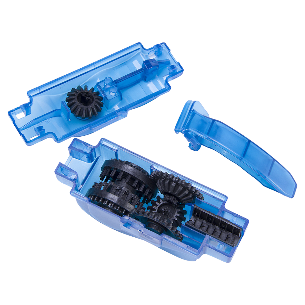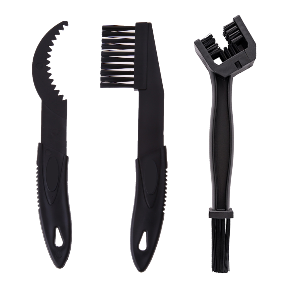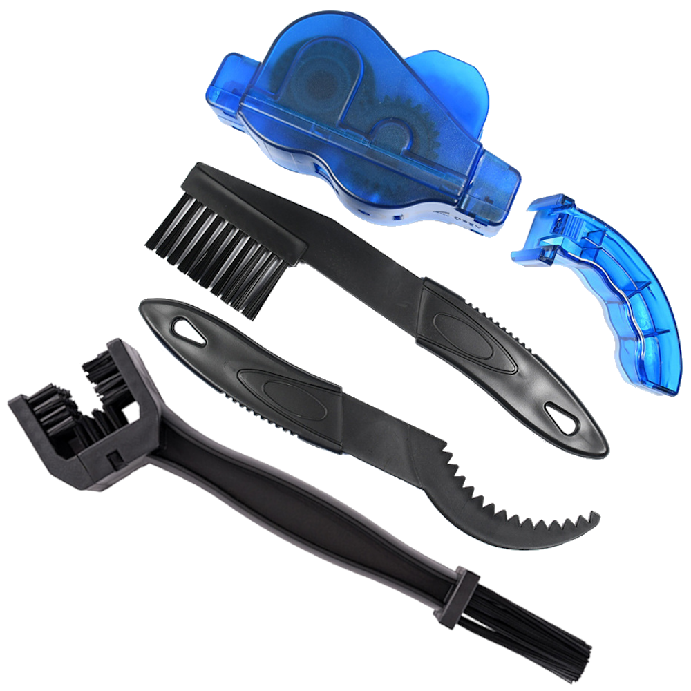 - Ilość elementów: 2x szczotka z włosami, 1x szczotka z zębami, uchwyt, narzędzie do smarowania/czyszczenia łańcucha z obrotowymi szczotkami